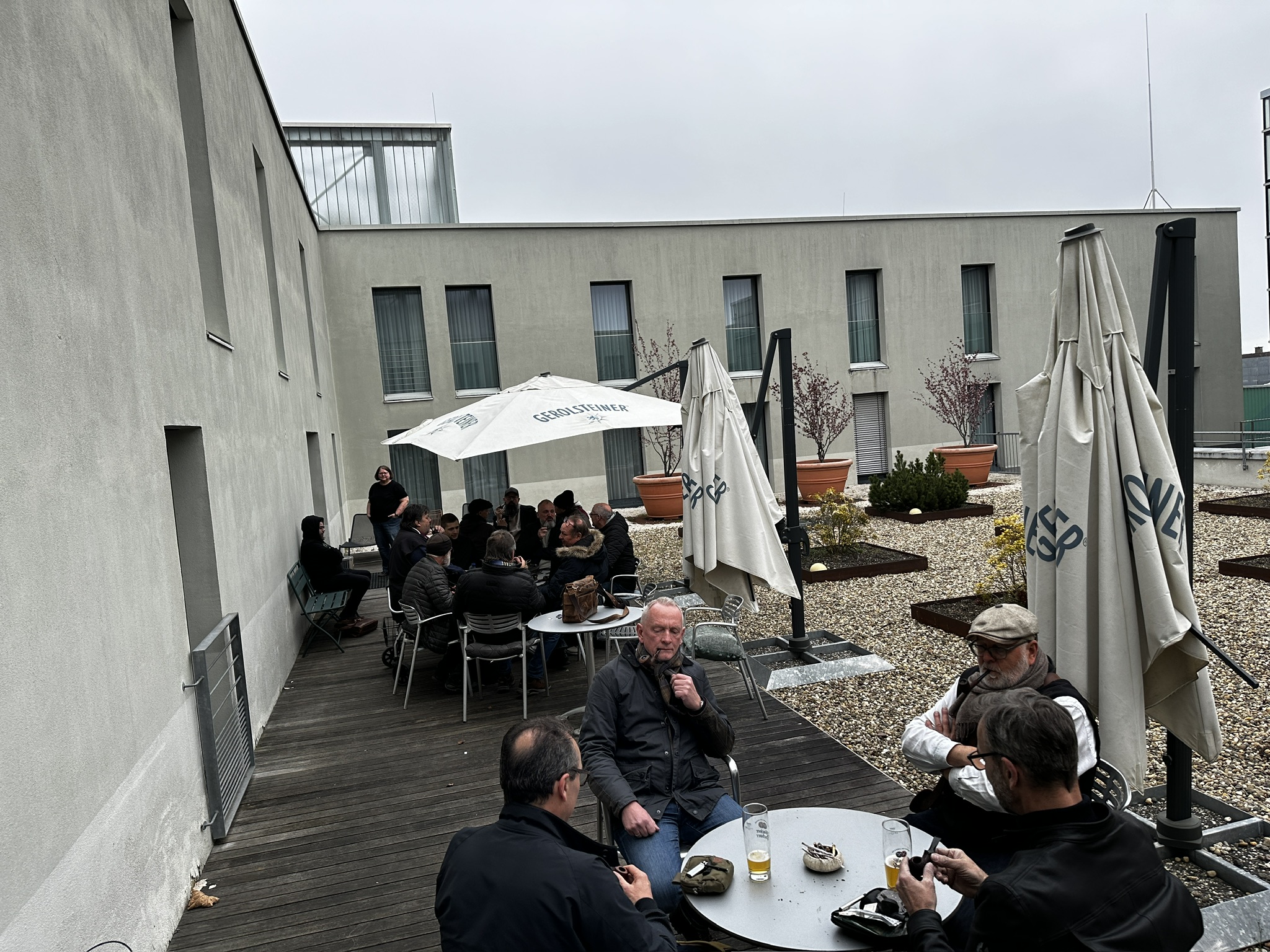 In der oberen Etage gab es ein großzügiges Raucherdeck, das gut genutzt wurde, soweit es trocken war.