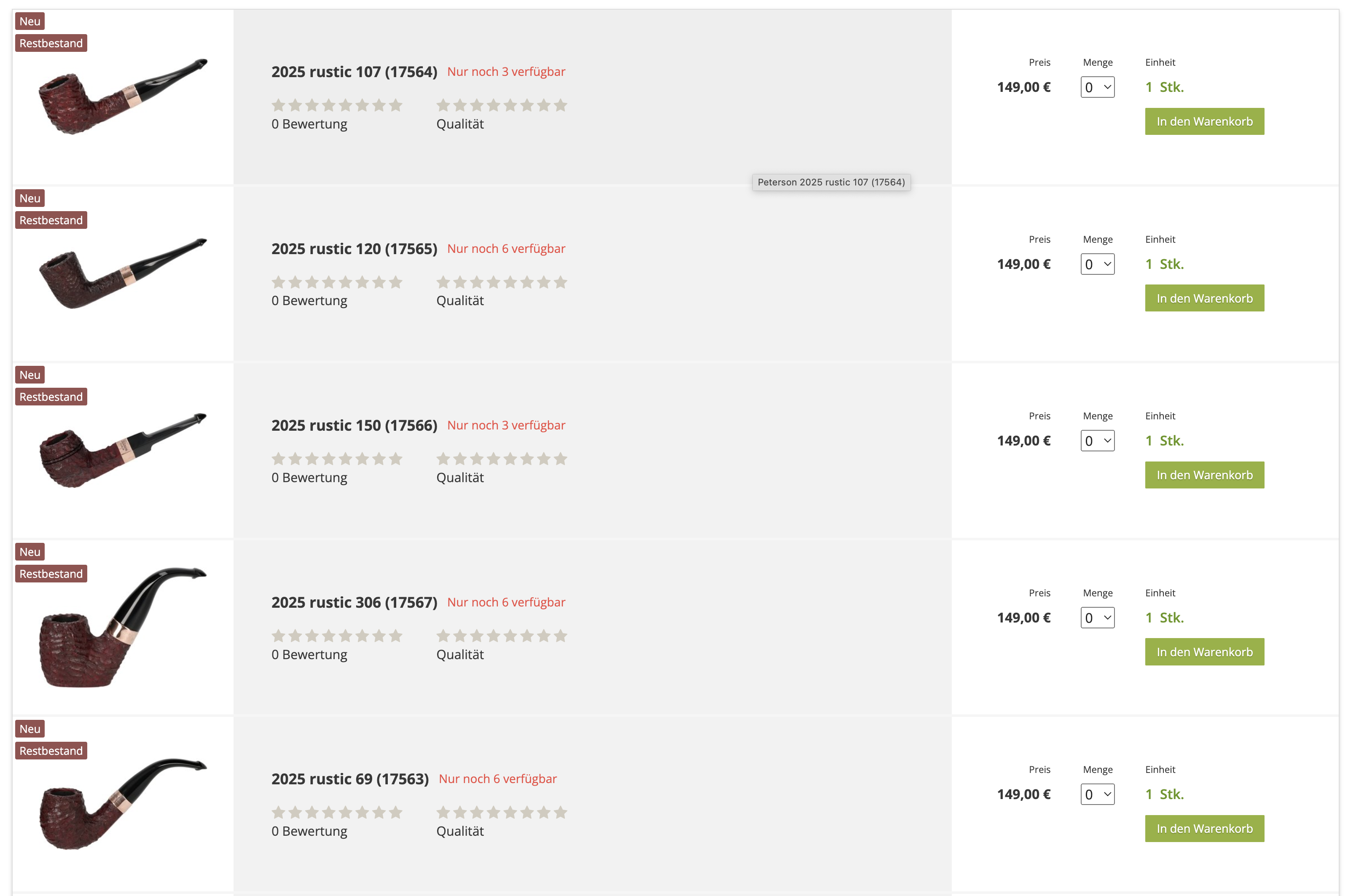 Last, but not least kommt die Peterson Jahrespfeife 2025 in unseren Fokus. Dieses Jahr wurde der Importeur, Kopp Pipes, mit besonders wenig Exemplaren bedacht. Wir sind glücklicherweise einer der wenigen Händler, die ein paar Pfeifen erhalten haben. Das diesjährige Modell ist die Wiederauflage eines uralten Peterson-Modells aus dem frühen 20. Jahrhundert. Es ist in rustiziert und sandgestrahlt erhältlich. Für den deutschen Markt mit 9mm Filterbohrung.